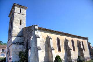 Située à l’extrémité Est du vieux bourg, à mi-pente des coteaux, l’église Saint-Aubin domine la petite vallée de la Pimpine. Si les raisons de son implantation à cet endroit restent inexpliquées, ses origines anciennes sont attestées par le testament de Pierre de Latresne qui, en 1274, demande à y être enseveli au côté de son père.